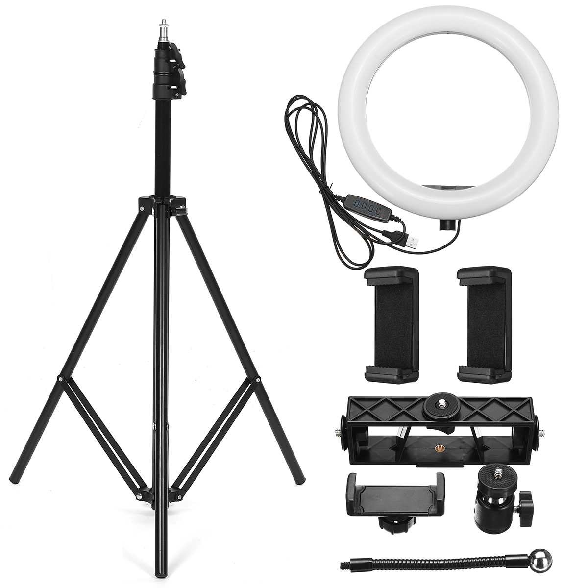 26cm LED Ring Light 3 Color 10 Brightness Dimmable Fill Light with Tripod Stand Dual Phone Clip for Youtube Live Stream Tiktok Broadcast