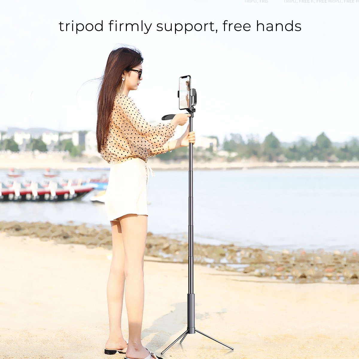 1.Tripod integrated design, can be used as a mobile phone tripod, desktop stand, easy to take a group photo, release your hands to catch up.