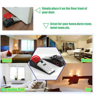120 dB high-pitched continuous siren when it is activated. Easy to operate, just put it under the door.