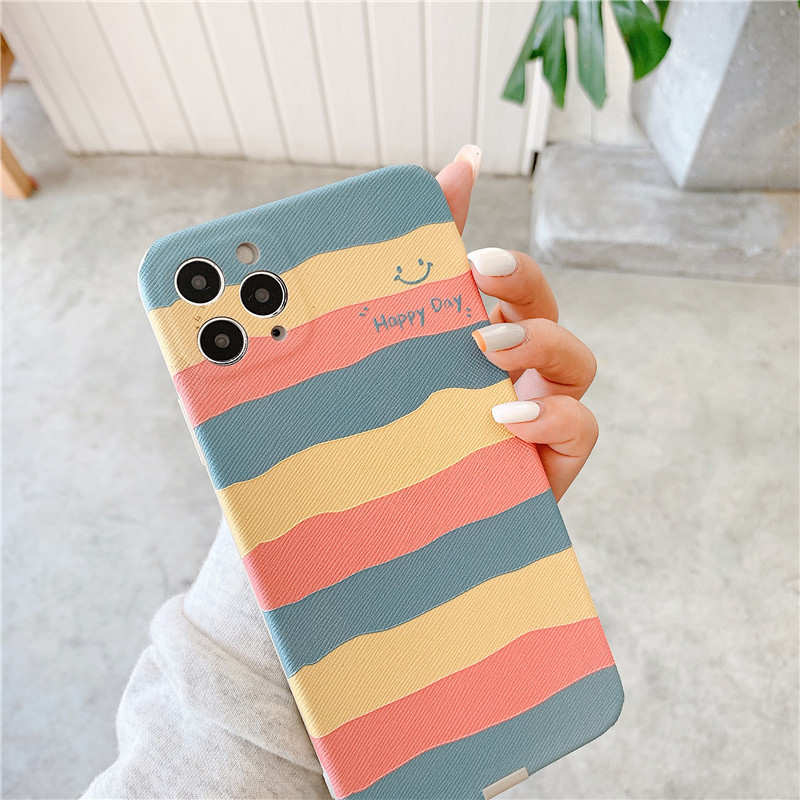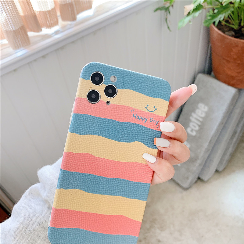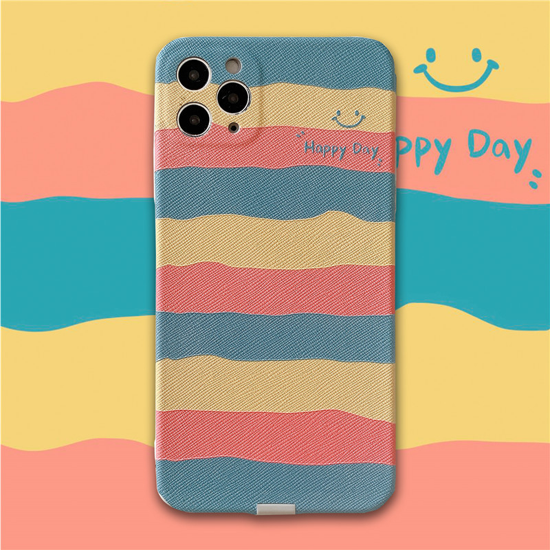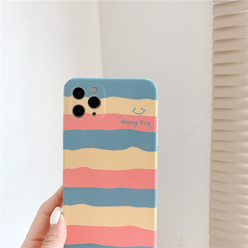 Color: Embossed horizontal stripe rainbow smiling face